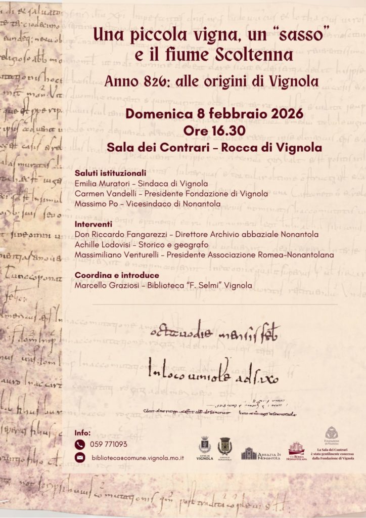 Home / Eventi / Una piccola vigna, un “sasso” e il fiume Scoltenna – Anno 826: alle origini di Vignola Una piccola vigna, un “sasso” e il fiume Scoltenna – Anno 826: alle origini di Vignola Invito Posted on 4 Febbraio 2026 by auris